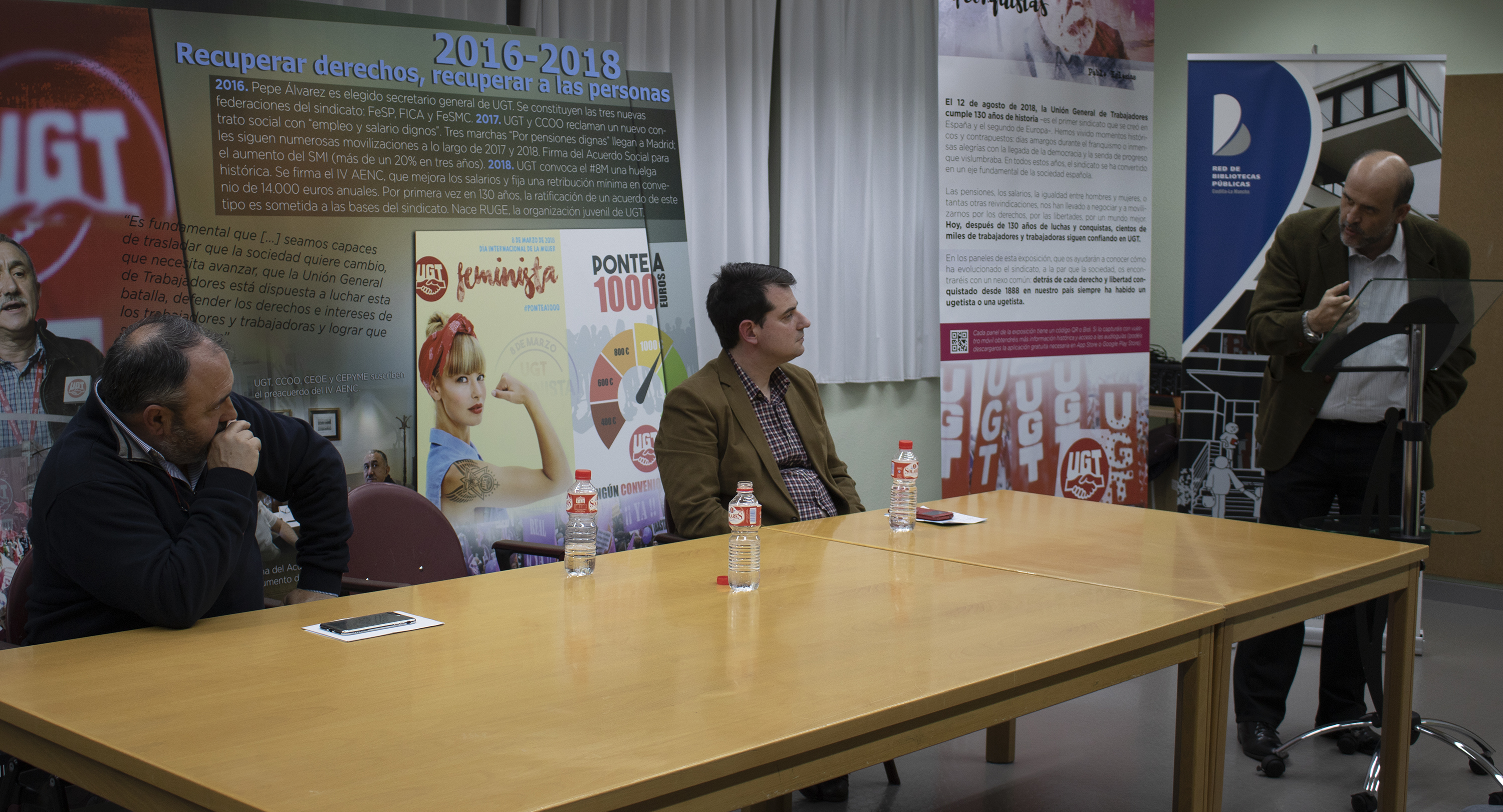 La exposición “130 años de Conquistas y Luchas” está recorriendo toda España desde agosto y se podrá visitar hasta el 4 de marzo en Cuenca. Consta de 20 paneles, 14 de ellos de carácter histórico y 6 temáticos, que recogen los principales logros del sindicato en momentos históricos como la dictadura de Primo de Rivera, la II República, la Guerra Civil, la dictadura franquista con el exilio de UGT y los años 80 y 90 de la democracia.
