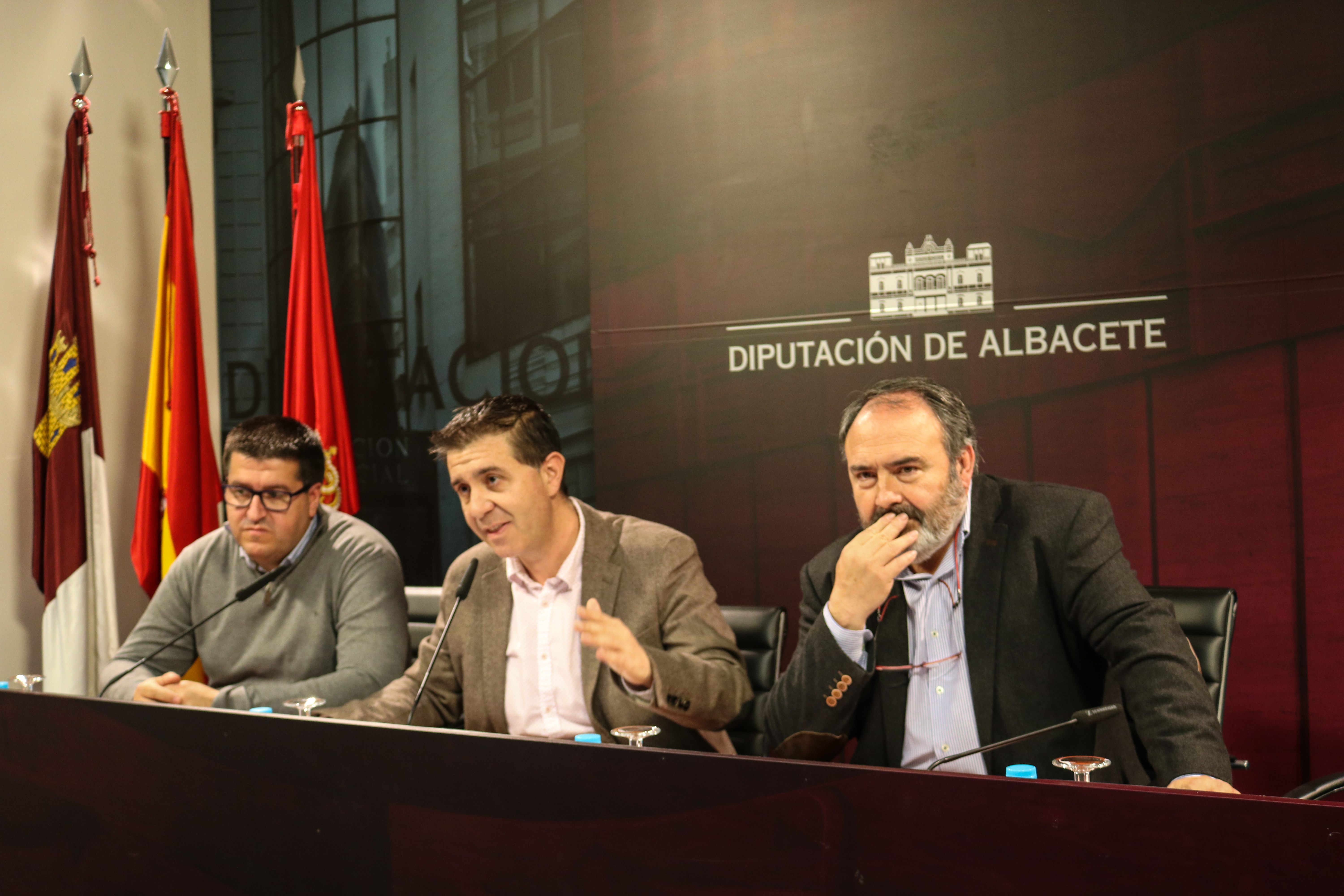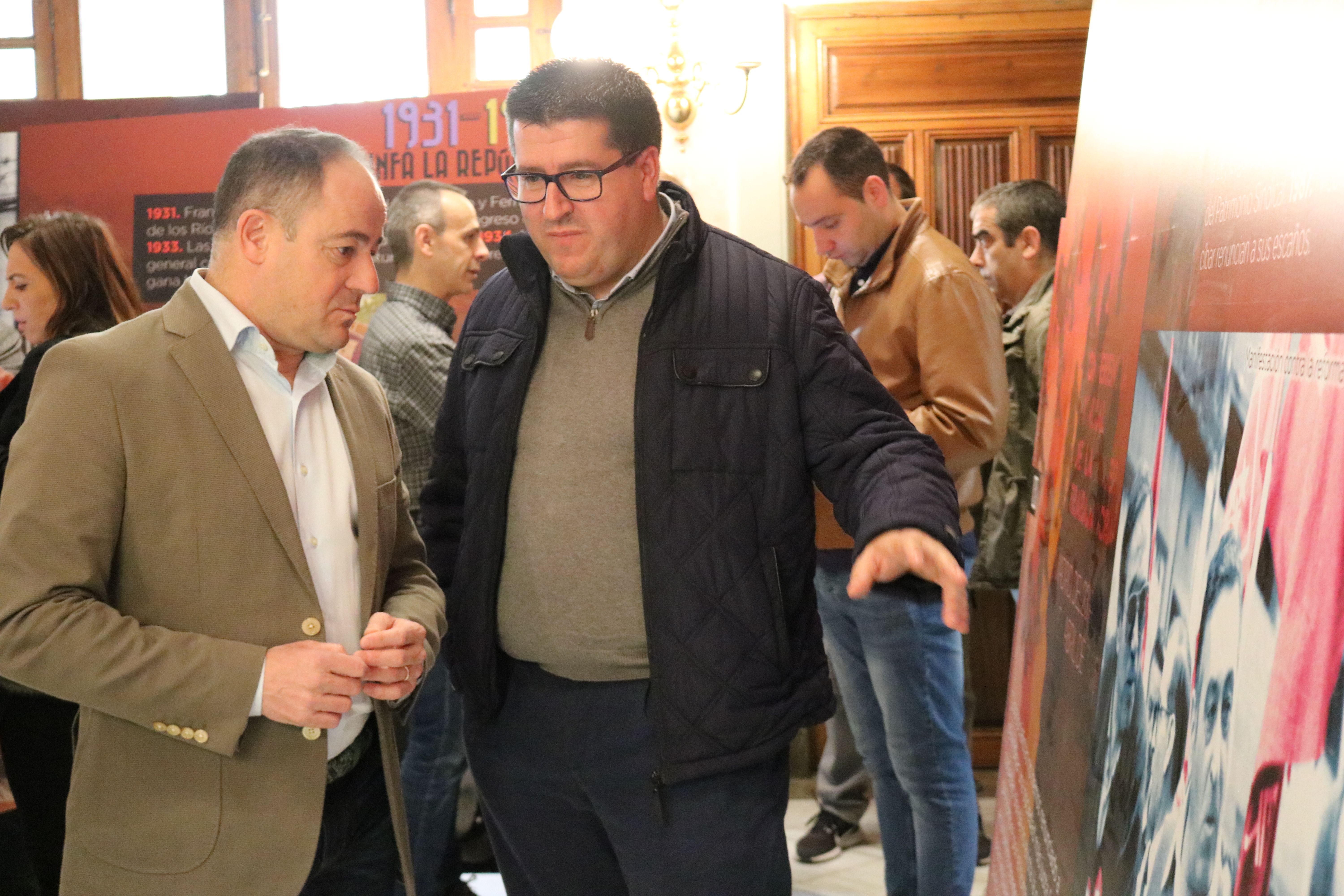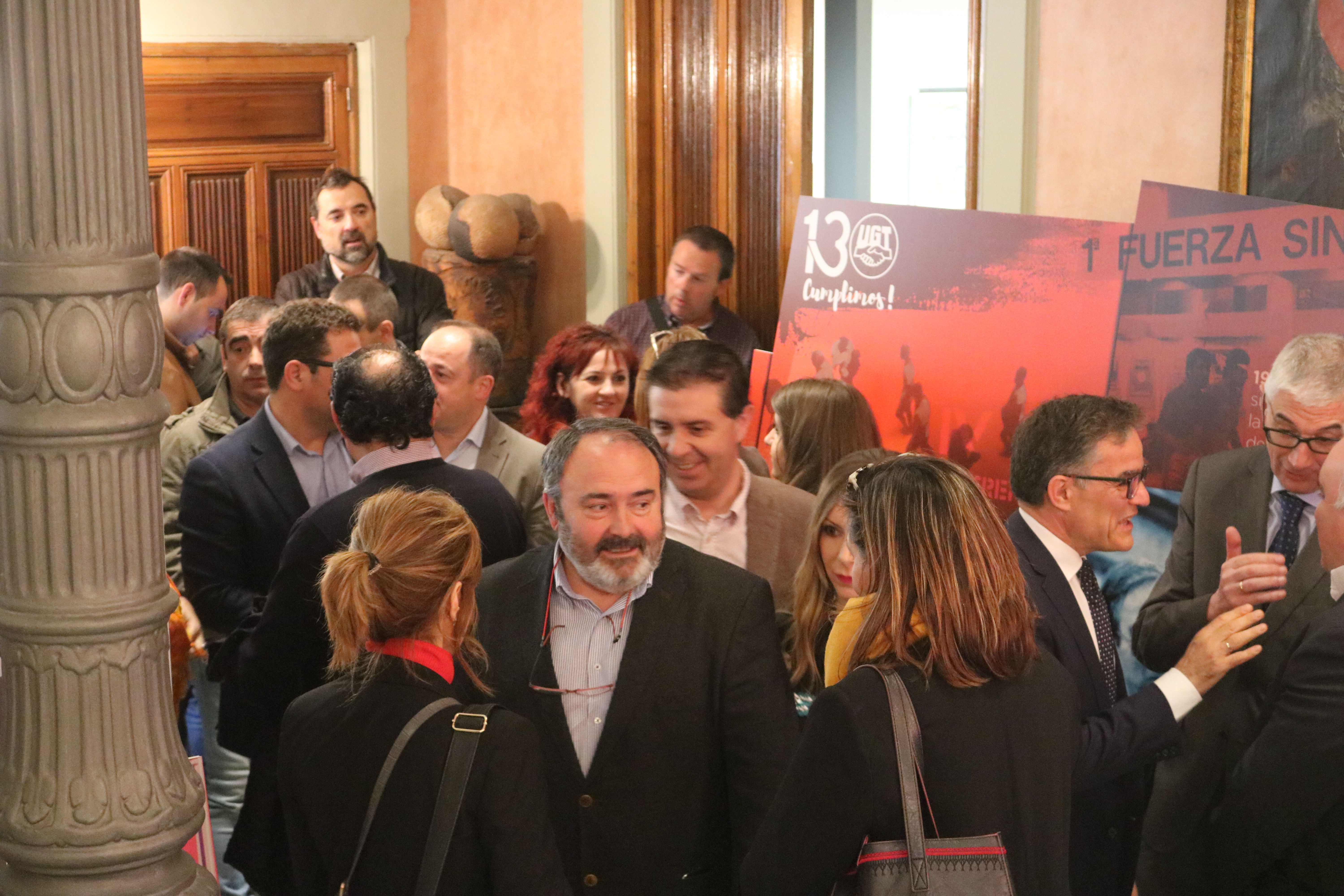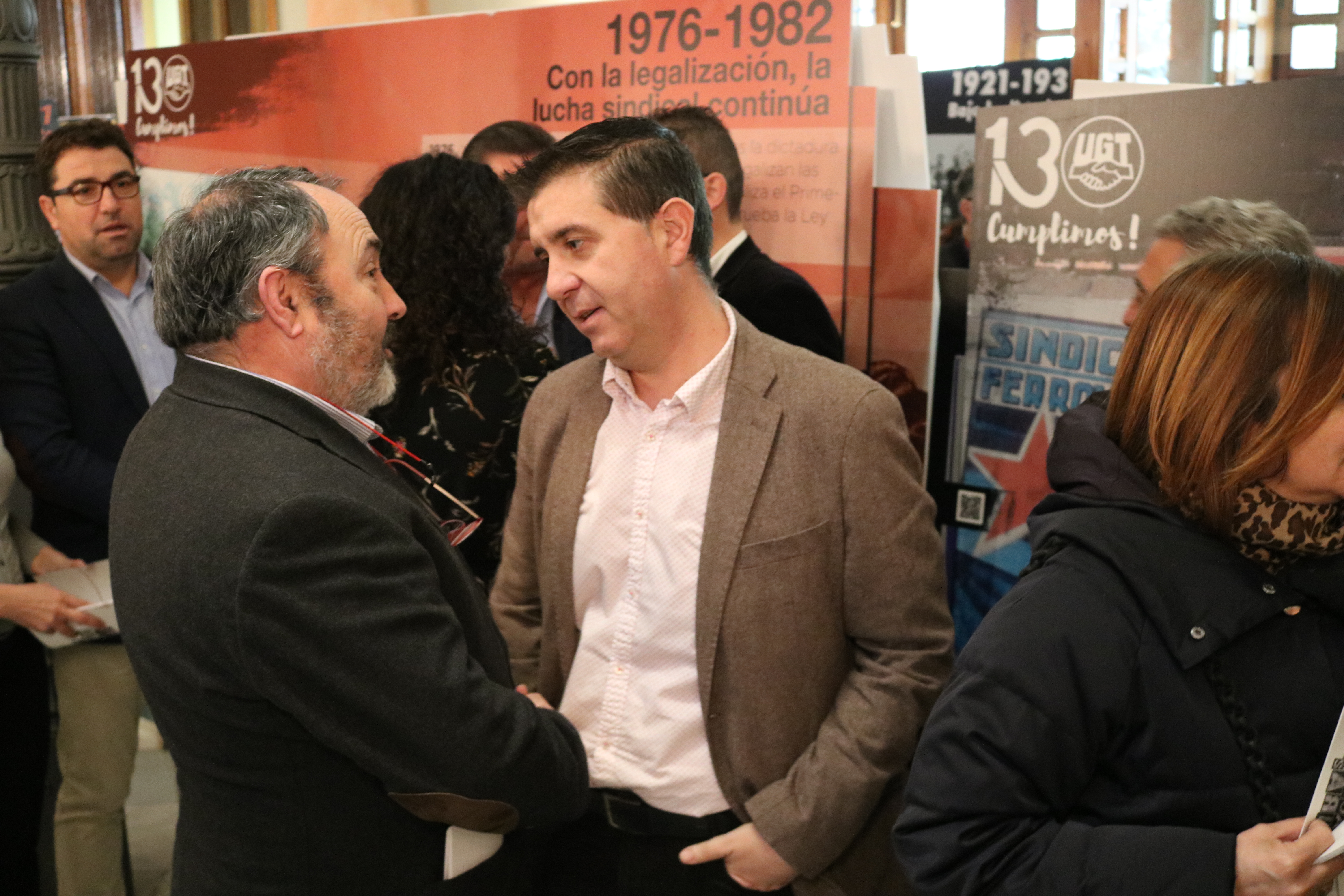 El secretario general de UGT Albacete, Javier González, y el secretario general de UGT CLM, Carlos Pedrosa, han inaugurado esta mañana en la Diputación de Albacete la exposición por el 130 aniversario del sindicato en un acto con representantes de todos los partidos políticos y numerosos sindicalistas