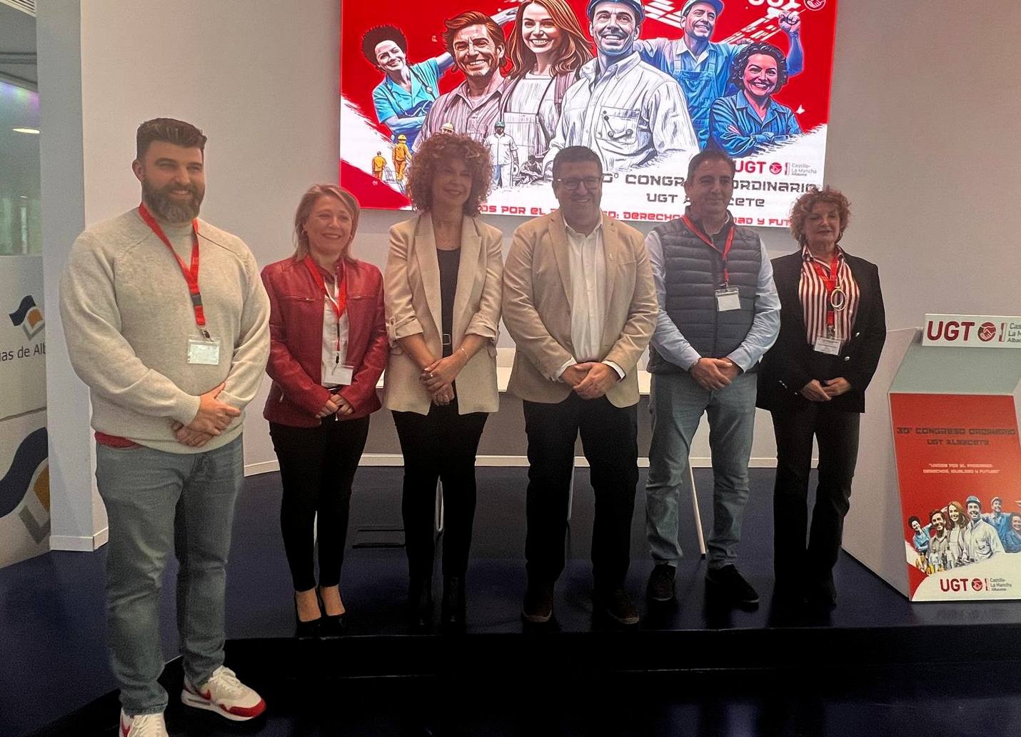 Al 30º Congreso Provincial han asistido la secretaria general de UGT Castilla-La Mancha, Lola Alcónez; el diputado nacional Emilio Saéz; la senadora nacional Amparo Torres; la diputada regional María Isabel Sánchez; el subdelegado del Gobierno en Albacete, Miguel Juan Espinosa; el delegado provincial de Economía, Empresas y Empleo en Albacete, Nicolás Merino; el vicepresidente de la Diputación de Albacete, Francisco Valera; el segundo teniente de alcalde y concejal de Coordinación General de Funcionamiento del Gobierno municipal, Alberto Reina; el director general del SEPE, Gerardo Gutiérrez; y la secretaria general de CCOO Albacete, Carmen Juste, entre otros.