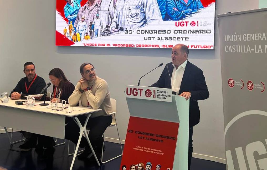 Francisco Javier González ha sido reelegido secretario general de UGT Albacete durante el 30º Congreso Provincial del sindicato celebrado hoy, un congreso en el que el medio centenar de delegados y delegadas reunido ha dado el máximo respaldo a su candidatura, con un 100% de los votos.