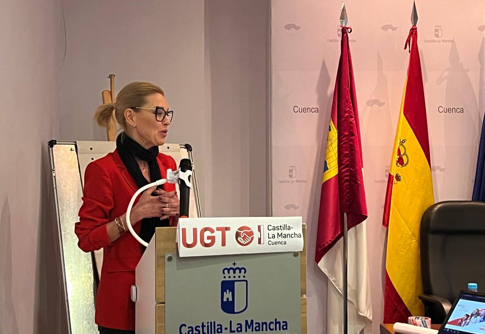 Por su parte, la secretaria general de UGT Castilla-La Mancha, Lola Alcónez, felicitaba al recién reelegido secretario general del sindicato en Cuenca y apuntaba que la Ejecutiva Regional tiene la mano tendida a escuchar y atender todas las peticiones y demandas de las provincias. “La unidad es nuestra razón de ser; somos necesarios y esenciales”, ponía de manifiesto, al tiempo que señalaba que “las amenazas que nos puedan llegar tienen que hacer que salgamos más reforzados”.
