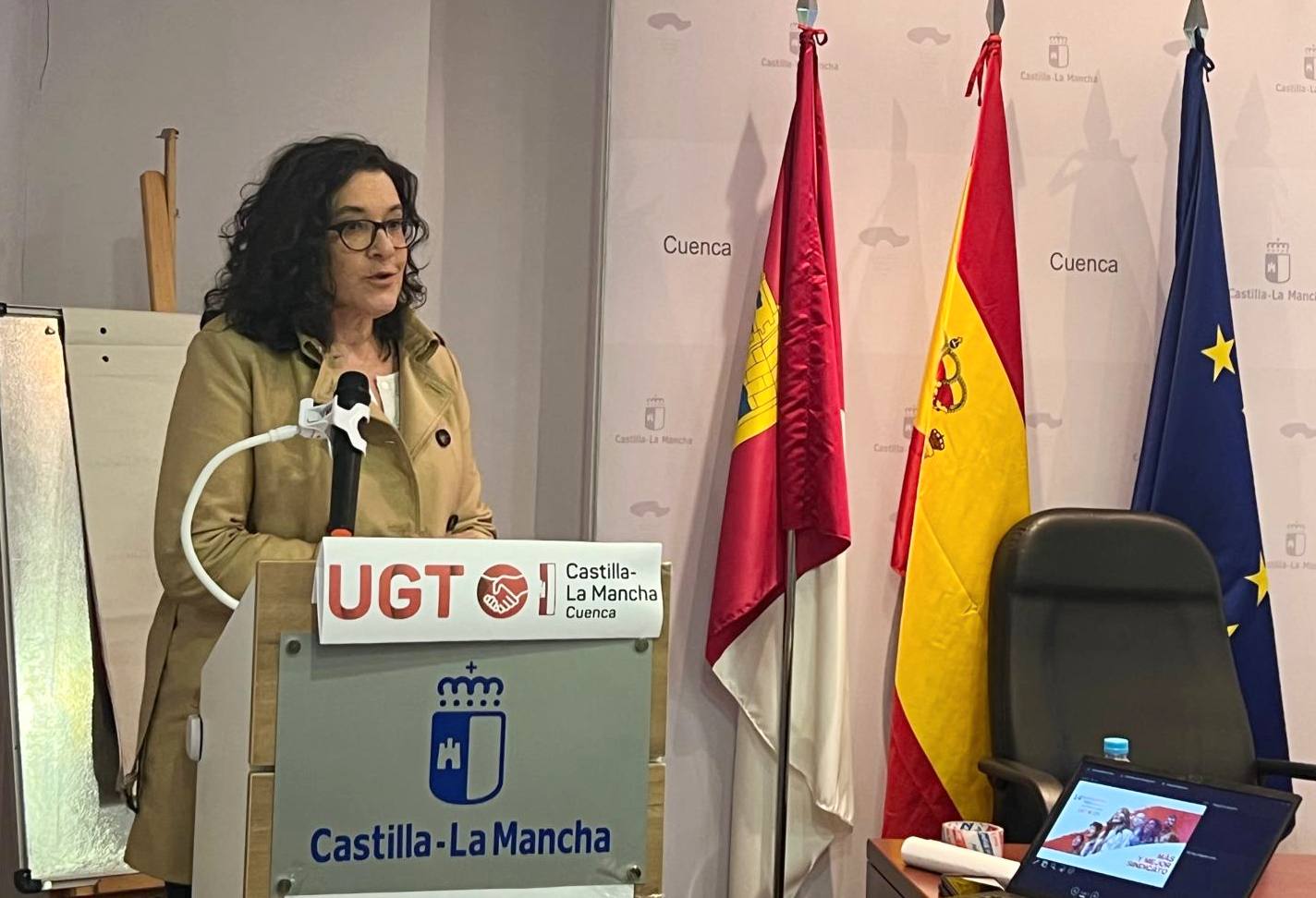 Junto a Lola Alcónez y el resto de miembros de la Ejecutiva regional de UGT, a este 14º Congreso también han asistido el diputado nacional Luis Carlos Sahuquillo; el presidente del grupo socialista en las Cortes autonómicas, Ángel Tomás Godoy; la viceconsejera de Empleo, Diálogo Social y Seguridad y Salud de Castilla-La Mancha, Nuria Chust; la delegada provincial de Economía Empresas y Empleo de Cuenca, Aránzazu Poveda; la delegada de la Junta en Cuenca, María Ángeles López; el diputado provincial, José Luis Gómez; la primera teniente de alcalde del Ayuntamiento de Cuenca, Saray Portillo; la secretaria general de UGT Servicios Públicos CLM, Carmen Campoy; ela secretaria general de CCOO Cuenca, María José Mesas; y el secretario general de CEOE Cepyme Cuenca, Ángel Mayordomo.